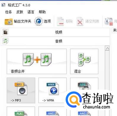 打开格式工厂,点击左边的“音频”,然后在下面选择需要的音频格式,这里点选“MP3”。