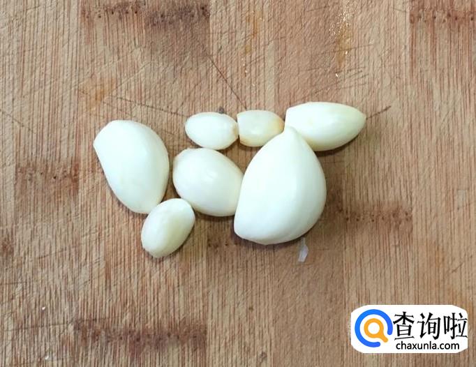 大蒜根据自己的喜好来定量,剥去外皮清洗干净后剁成蒜末备好。