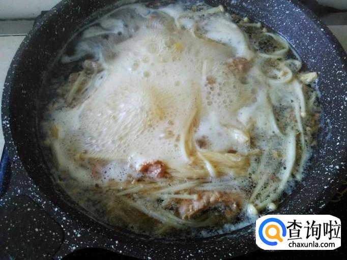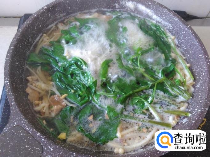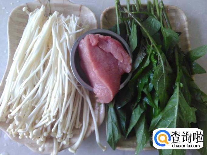 金针菇100克,白花菜50克,瘦肉50克,姜蓉适量,生抽半小勺,料酒半小勺。