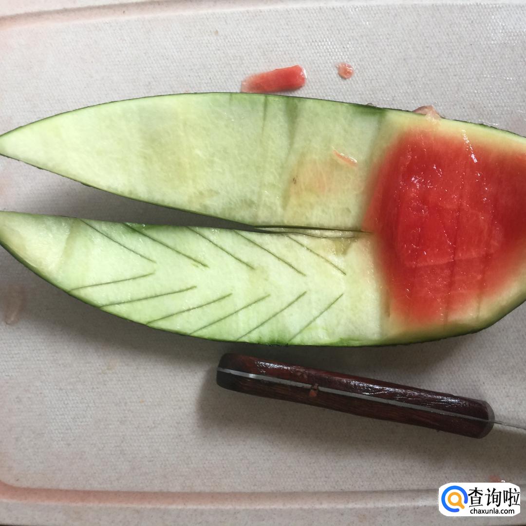 如果大家想要用西瓜皮拉花,首先要把一片西瓜的果皮和果肉分离,然后去掉西瓜皮中的白色部分并打上自己想要的花刀,最后用牙签固定好就可以了。接下来小编给大家详细讲解一下。