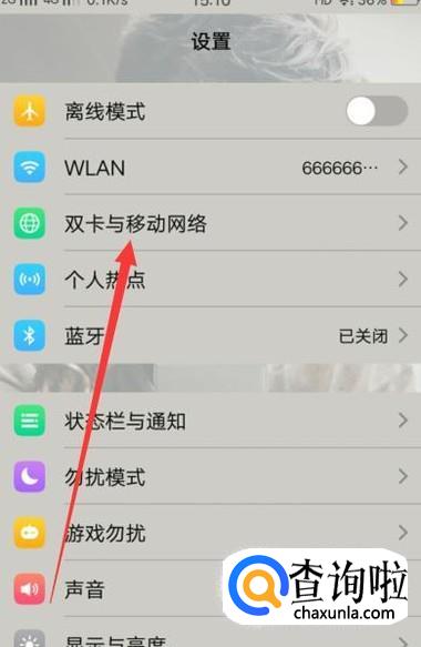 进入之后,点击“双卡与移动网络”,进入下一页面,如图所示。