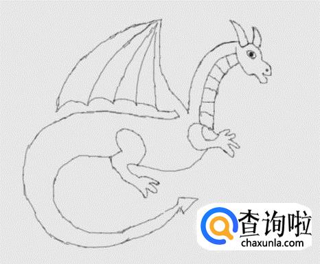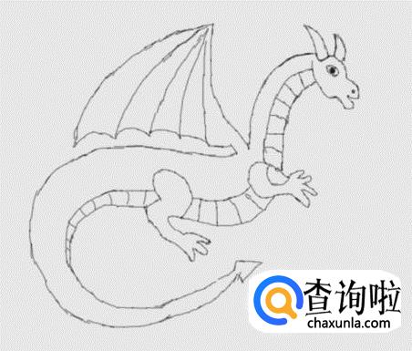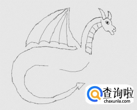 在翅膀和脖子的基础上再画出龙的身体和尾巴,如图所示: