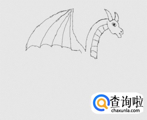 再在脖子的左侧画出龙的一只翅膀,如图所示: