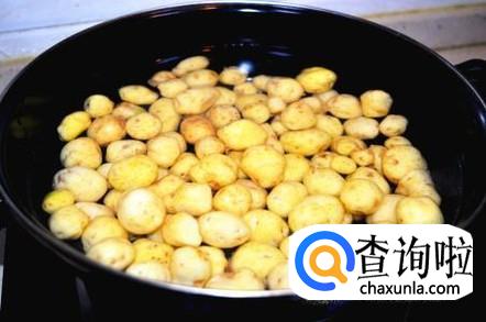 锅中热水,水开后将土豆放入锅中煮一个小时左右,待土豆软绵时捞出。