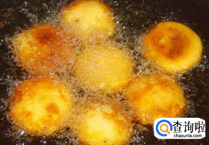 锅中热油,差不多六、七成热时,将其下入油锅炸,看到外表金黄时捞出,外酥里嫩的洋芋耙就做好了。