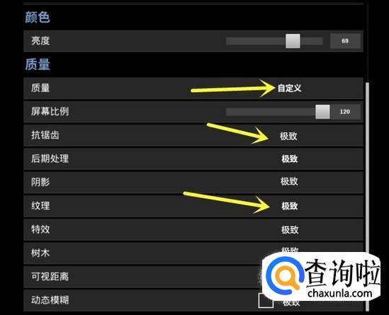 很多玩家觉得自己电脑配置稍微差点,想要降低游戏的配置来达到完美运行。那么我们就点击 图形 选项,将图形选项中的各项功能都调低一点就可以了。(主要是调节抗锯齿和纹理,如下图)