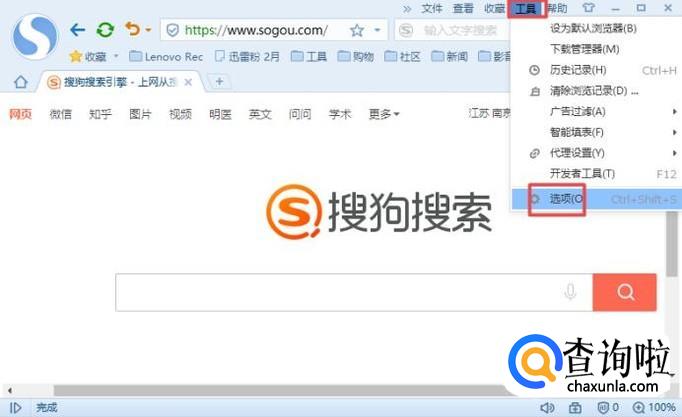首先,我们打开我们电脑上面的浏览器,然后我们点击工具,弹出的界面,我们点击选项;