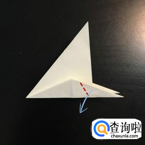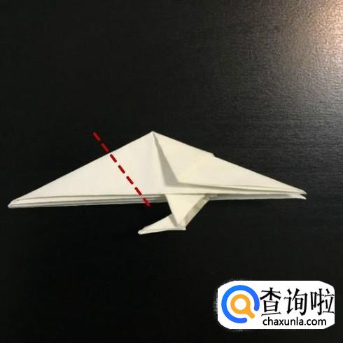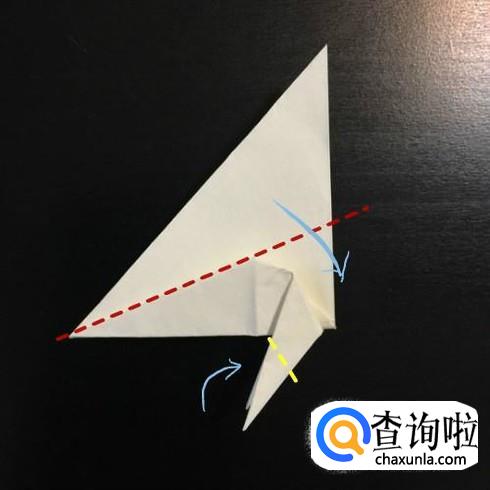 继续沿红色虚线向下折,形成鸽子的翅膀。再沿黄色虚线将鸽子的双腿分别从里面(面向我们的部分为外面)往前折。