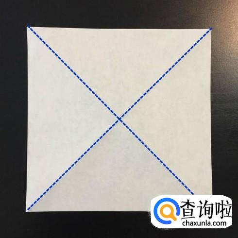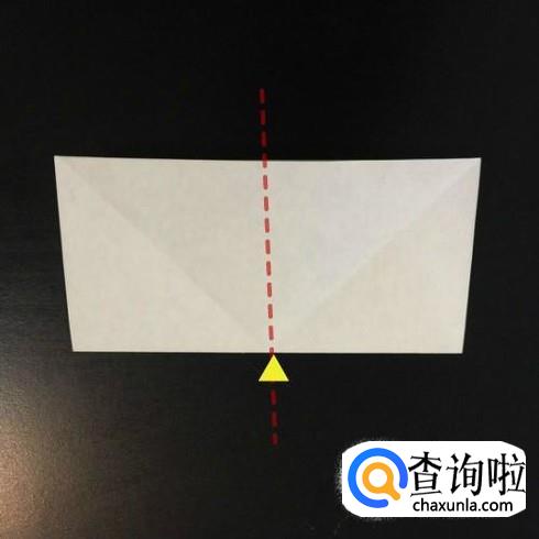 将正方形对边折成长方形,然后手捏住长方形中线(即:图中虚线),将长方形左右两边沿折痕向上推成三角形。