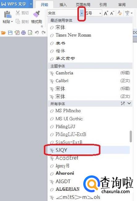 然后,我们打开WPS,如图所示,点击字体下拉菜单,就能找到我们刚安装的字体。