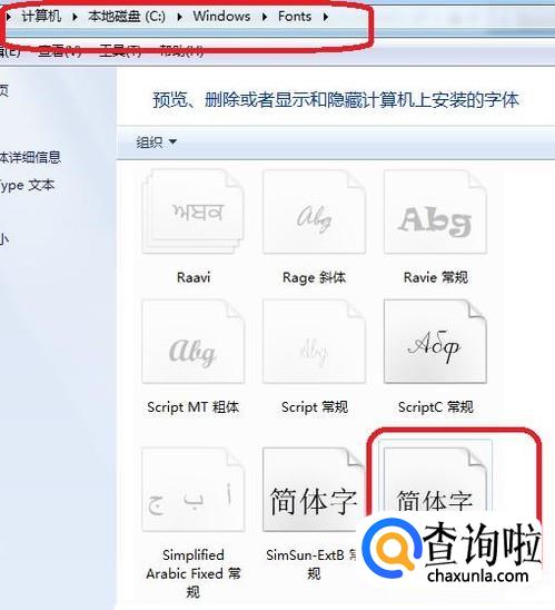 下载得到的文件需要解压缩一下,然后,把其中的名称为“SJQY”的字体文件复制粘贴到系统的字体文件夹中,如图所示。系统的字体文件夹打开路径见图中标记处。