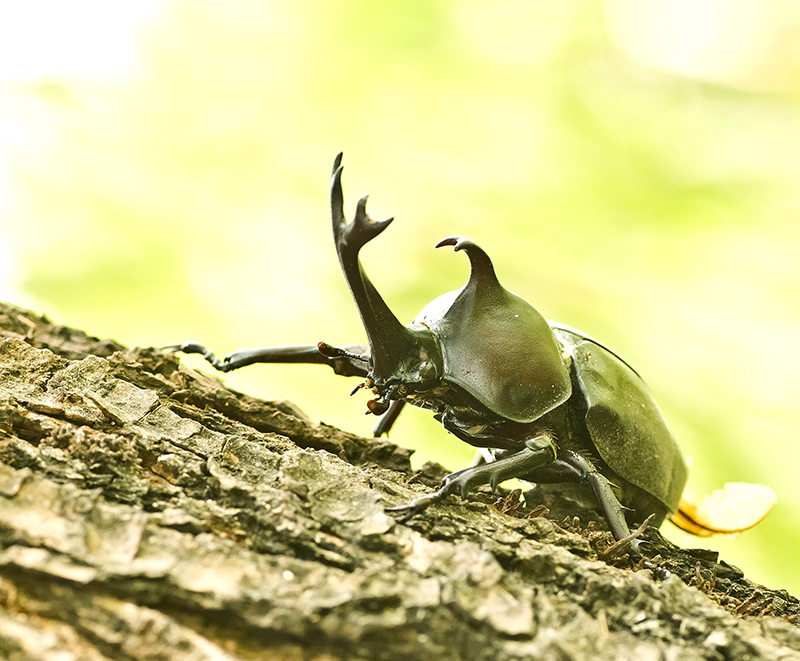 独角仙,学名称双叉犀金龟,又称兜虫,其幼虫又有鸡母虫【蛴螬】之称,体形大而威武。独角仙在中国一些地方较为常见,数量多可能危害森林。在用途上,独角仙可作观赏,是常见的宠物,又有很高的药用价值。2008年,研究人员发现在不同条件下独角仙会变色,对研究智能材料有启示作用。