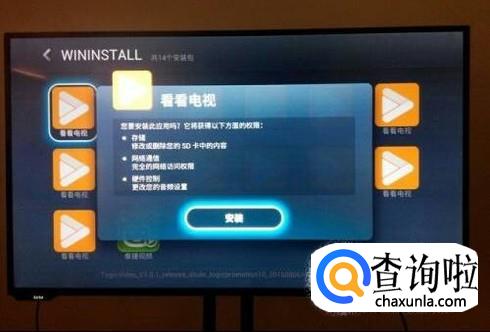 在多媒体界面中找到电视家的应用程序,然后根据提示安装。