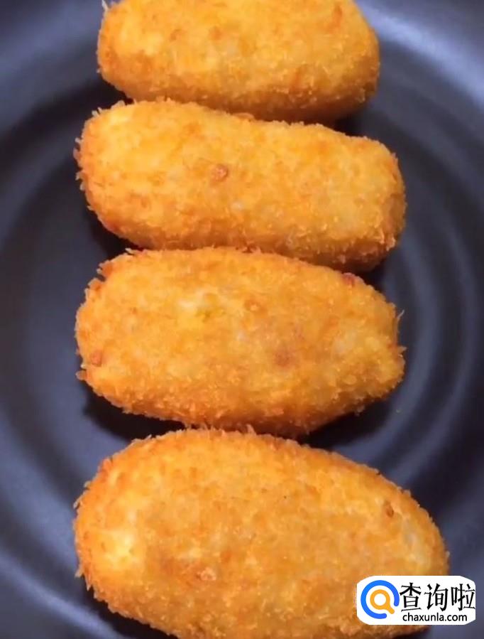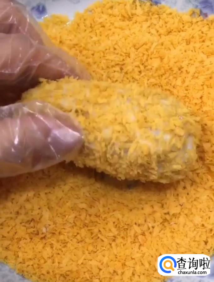 包好以后,我们将它均匀的裹一层面包糠