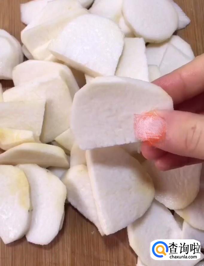 首先,我们将香芋去皮切成片,放入蒸锅中蒸熟