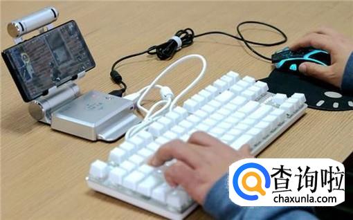 将手机架在小鸡吃鸡王座上,并且调整合适的角度,然后将鼠标和键盘的数据线插在小鸡吃鸡王座上。
