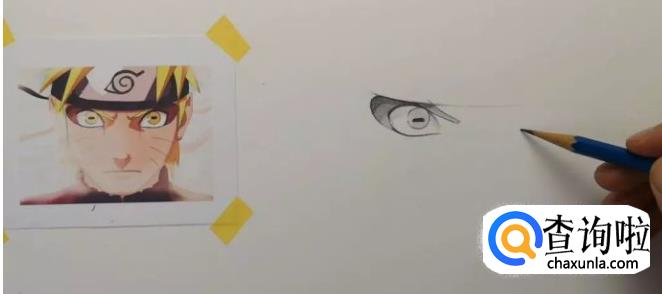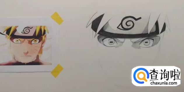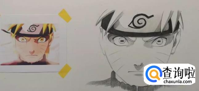 再画脸部,把脖子和肩膀的部分画完。就这样我们的漩涡鸣人就完成啦。