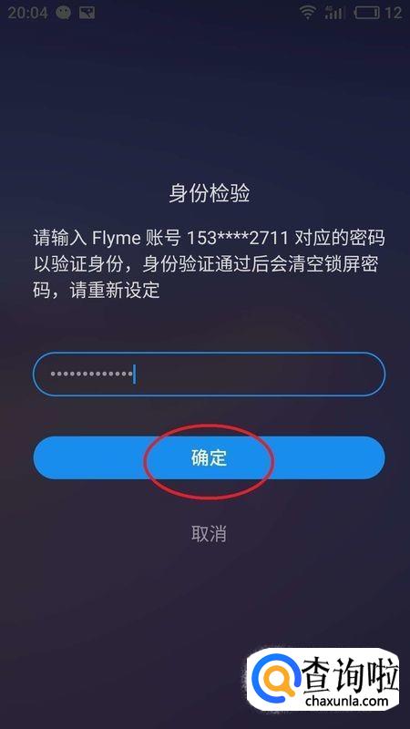 输入自己的Flyme账号密码即可解除屏幕锁。