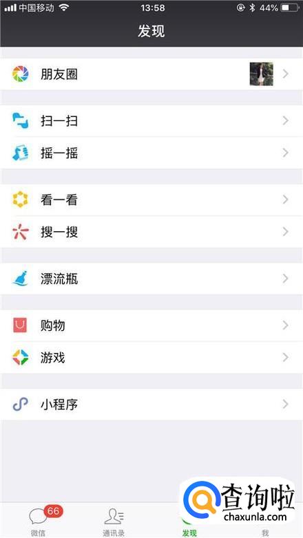 首先点击微信中的朋友圈,如下图所示。