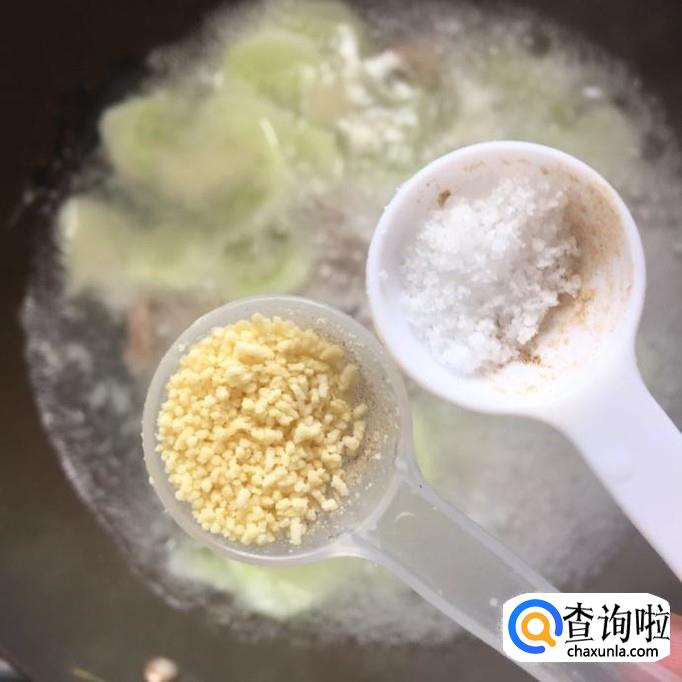 然后往锅中加入适量的盐巴和味精,如下图所示。