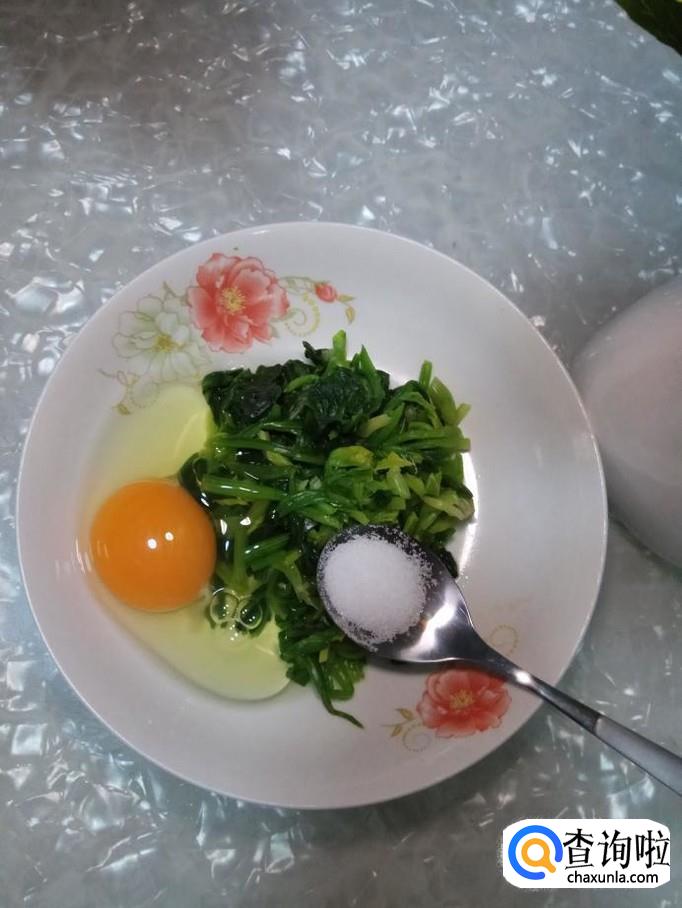 菠菜适量,鸡蛋适量,盐适量,香油适量。