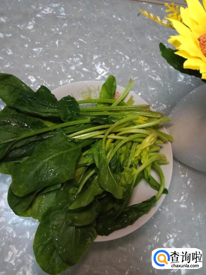 将适量菠菜摘好洗净,放入盘中。洗菠菜的时候可以加入少量盐,这样可以去除农药的残留。