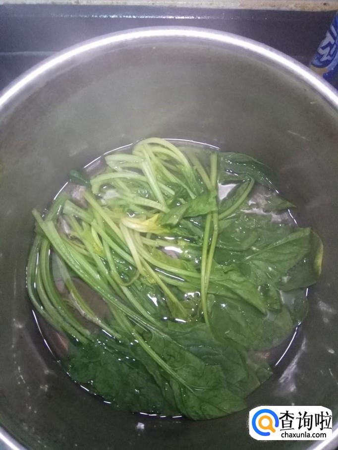 汤锅中烧适量开水,将菠菜放入锅中焯水,焯好后捞出,攥干水分,切成碎末。菠菜切得越碎越好。