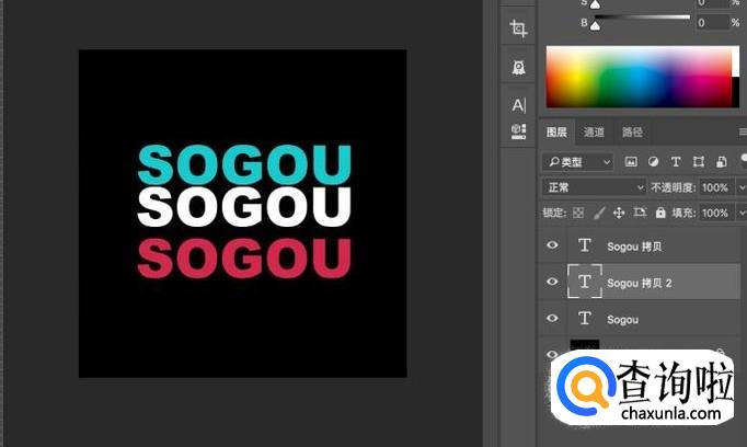 然后将三个文字图层都是居中对齐,准备调整位置。