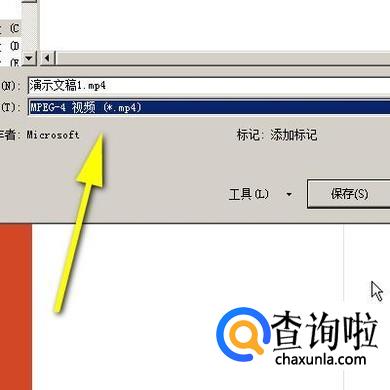 在打开的界面中,点击“保存”;再选择保存路径。在弹出的保存对话框中,点开保存类型下拉按钮。在多种保存格式中选择后缀名是mp4这种格式,如下图所示。