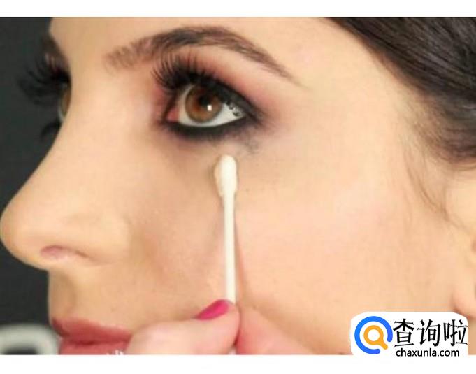 眼妆部分花掉,可以用棉签棒把垮掉的部分清理干净,再铺上一层粉,重新填充眼部分彩妆。