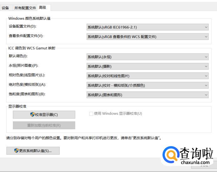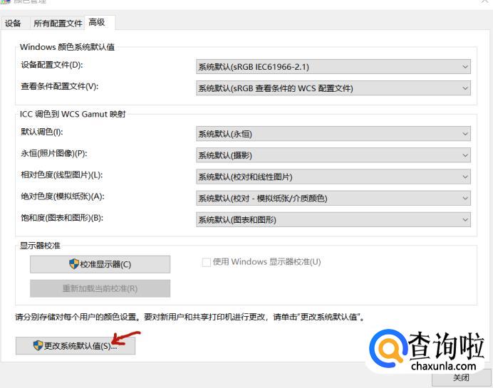 点击“更改系统默认值(S).