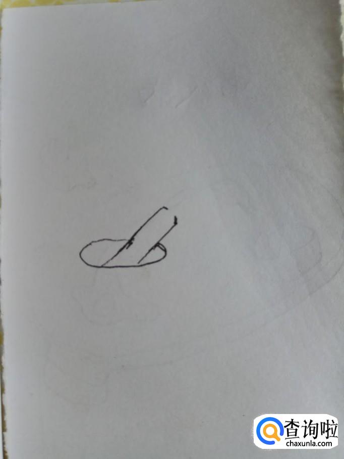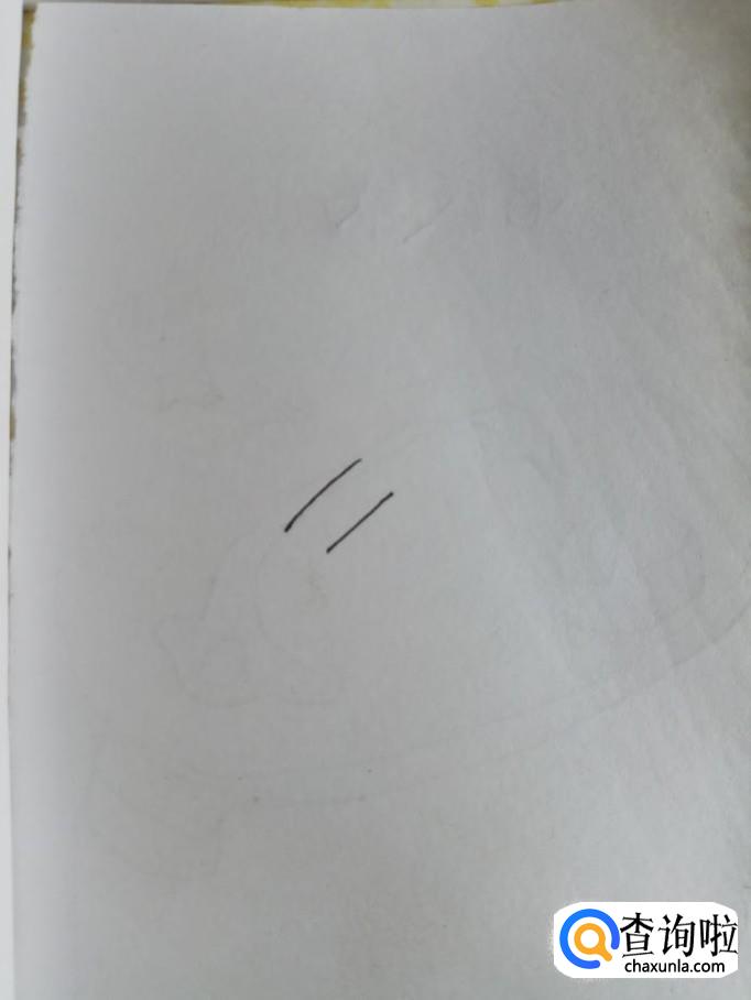 在白纸上画两条平行的线,画一个弧线,包裹着两条平行线,这是蒜臼的口部。