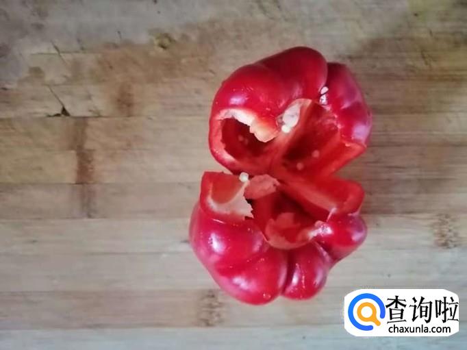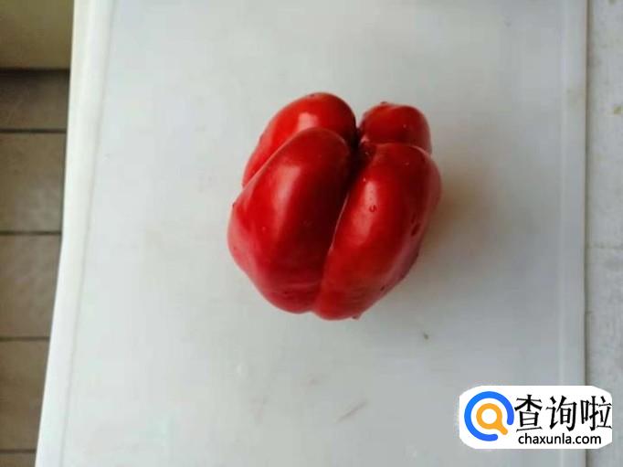 首先需要准备好一个红色的彩椒,把它清洗干净,因为彩椒中间部分容易藏灰,所以说我们在洗的时候也要注意,一定要把它的缝隙清洗干净。