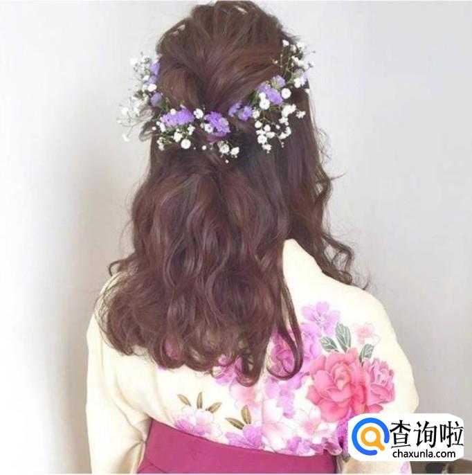 扎这个头发的时候,最好一开始将头发用卷发棒卷一下,制造头发的蓬松度。运用从头顶开始编麻花辫的原理,每次从两边抓头发的时候都应该轻轻的,不用拉得很紧,最后将尾端用夹子夹在头发里,然后搭上配饰等。这款发型,适合中等长度的头发。