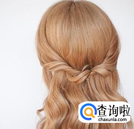这是一款自己就能完成的一款发型,首先将耳边的两边头发拉至后面,再将这两撮头发用头绳绑好,然后拿着固定好的头发尾端往里塞再拉出,这样会形成柔美的弧度,显得很温柔,最后再戴上配饰,绝对得仙气满满啊。