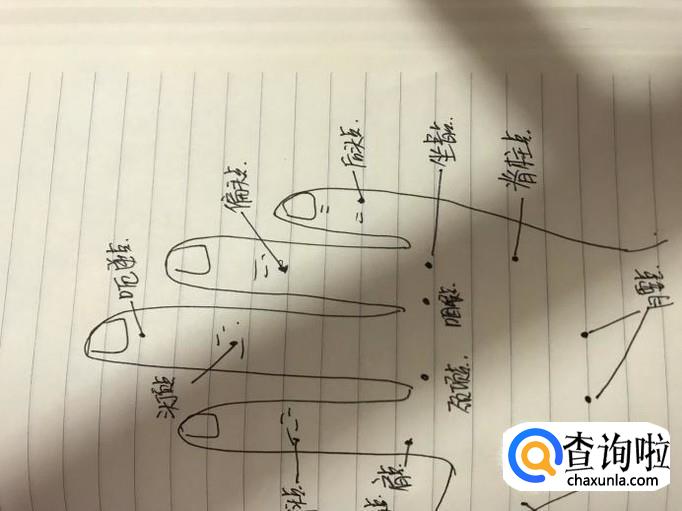 中指上有心点、三焦点,无名指有肺点、肝点,小指上有肾点。