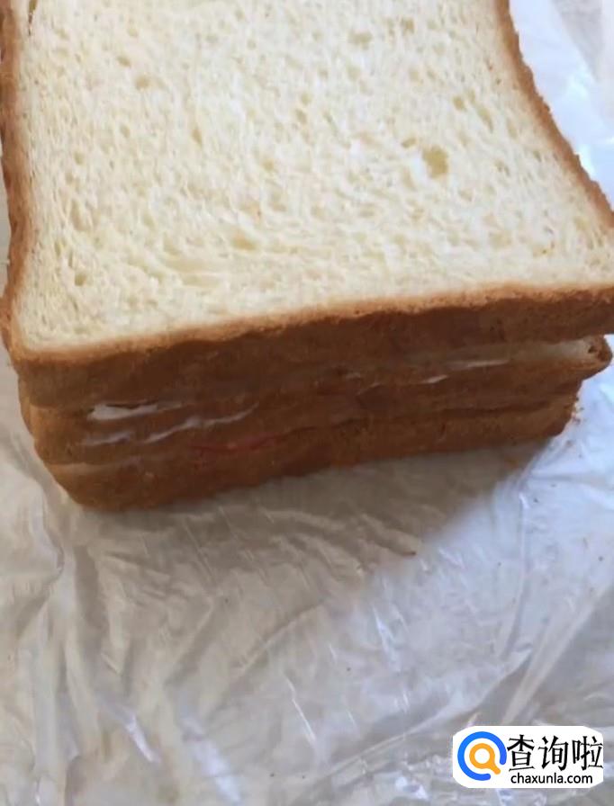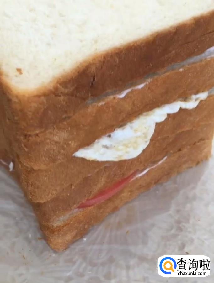 最后全部做好以后用刀切开,美味的三明治就制作完成啦!