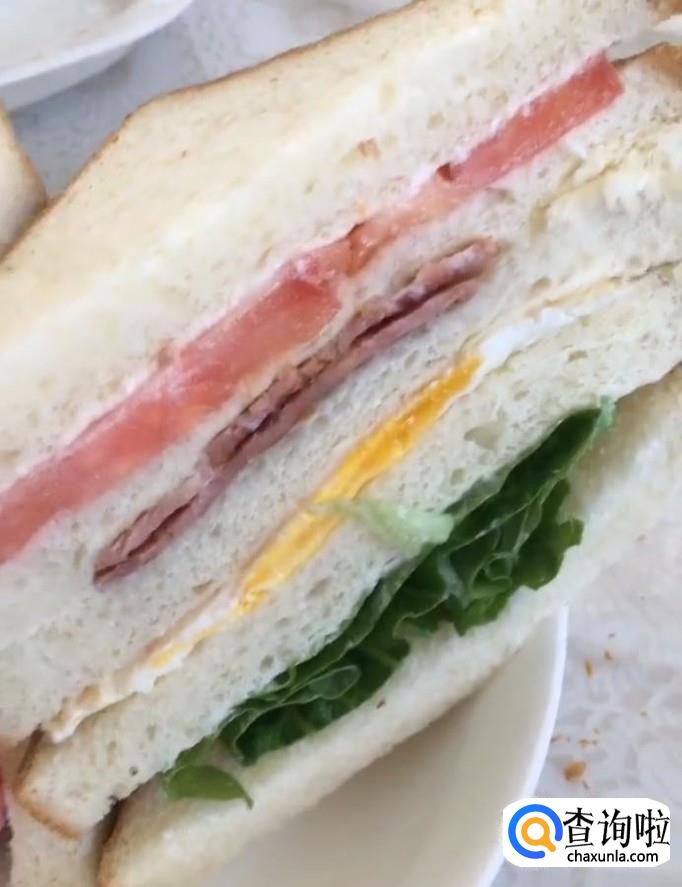 鸡蛋,面包片,生菜,西红柿,沙拉酱,火腿肠,培根