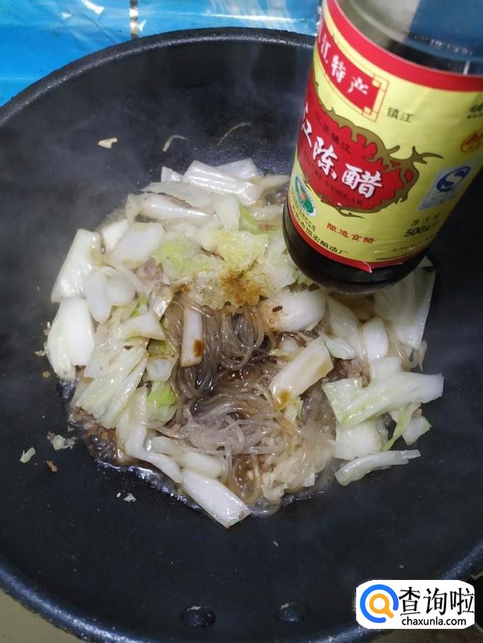 白菜适量,粉条适量,五花肉适量,盐适量,鸡精适量,五香粉适量,料酒适量,生抽适量,姜适量,陈醋适量,香菜适量。