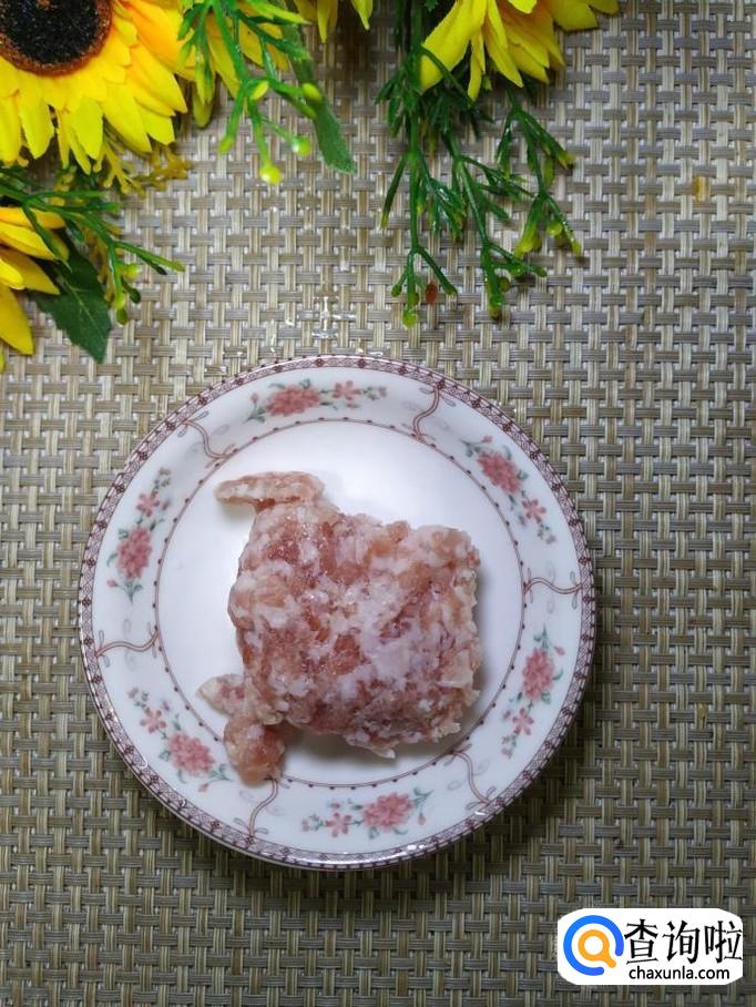 刚才适量五花肉,洗净后,剁成肉末,加入适量盐,鸡精,五香粉,生抽,料酒,姜末,搅拌均匀,腌制十分钟。