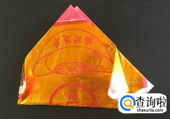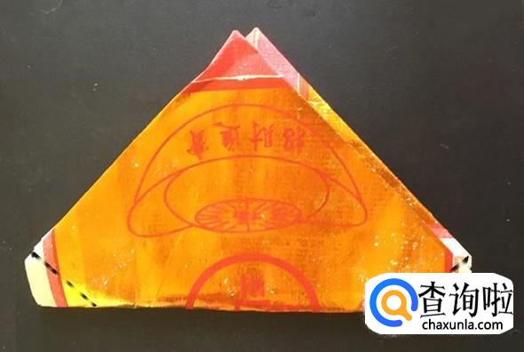 然后,沿着中线对折,左右两个角向内折。