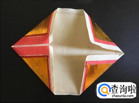 翻到另外一面,沿着虚线向内折,并将后面的展开。