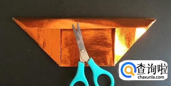 将上面那一小块梯形向下折,并盖在两个三角形上面。