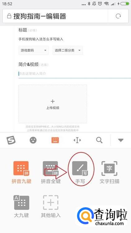 在这个页面上选择“手写”的图标。