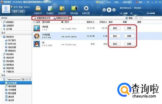 第四步,随意安装一个软件,然后大家可以在“设备”找到”已安装软件“在这里可以看到所有安装好的程序列,在这里大家可以看到两个操作——备份和卸载。