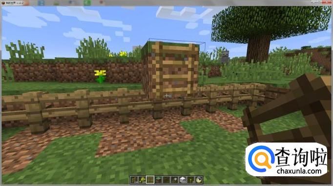 在靠近栅栏的一边建立两个方块,如图所示: