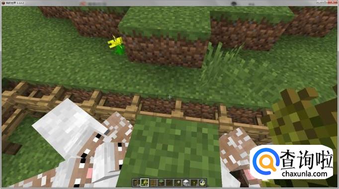 爬上之前设置的梯子,站在悬浮的方块上即可视察羊群,如图所示: