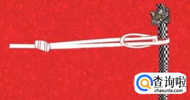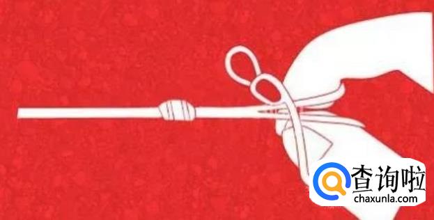 将竿梢伸入活结,这样活扣就套在竿梢上。