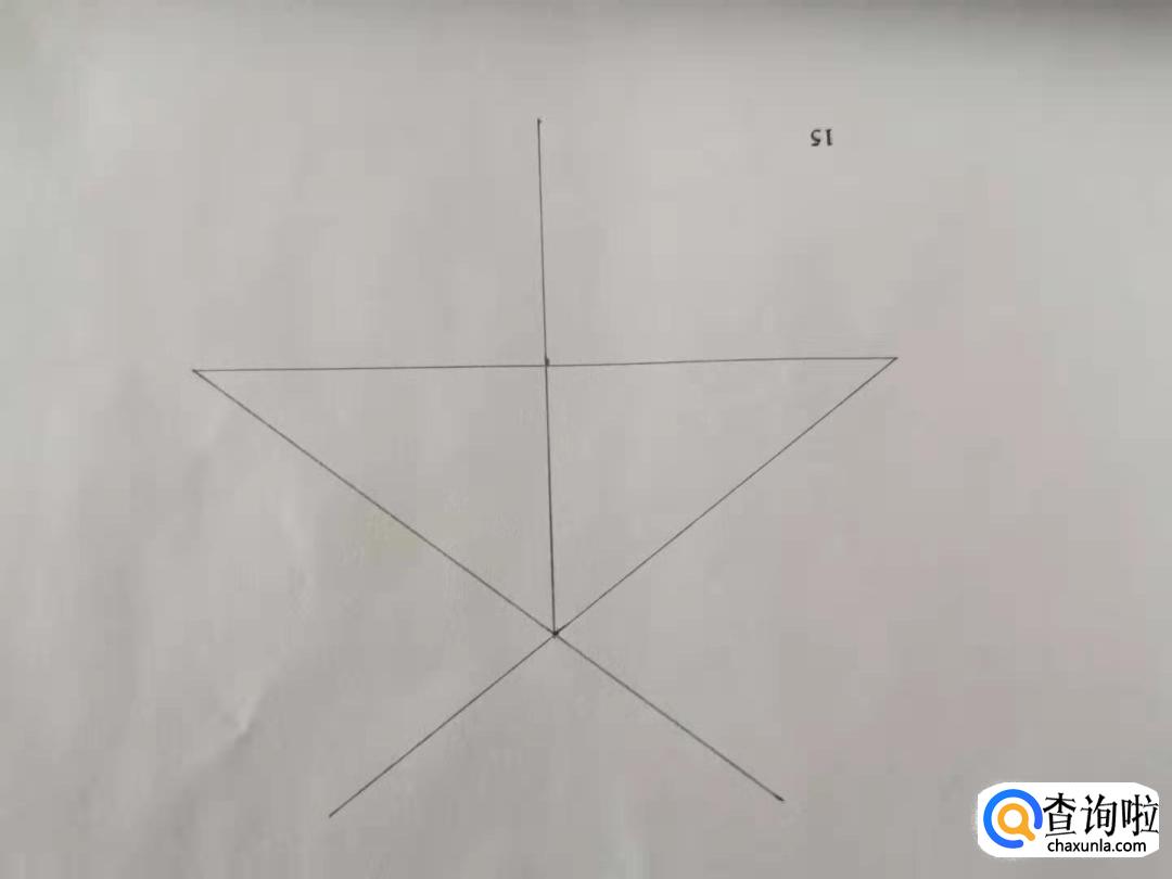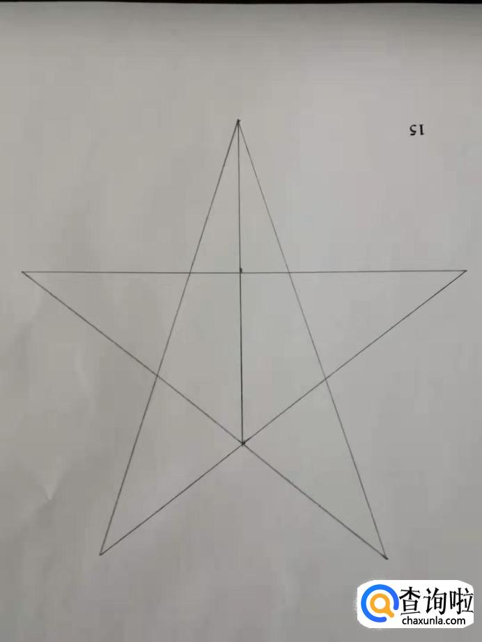 最后再用8厘米直线把竖线上端点与左边斜线下端点连接起来,如下图所示,这样,一个标准的五角星就画出来了。