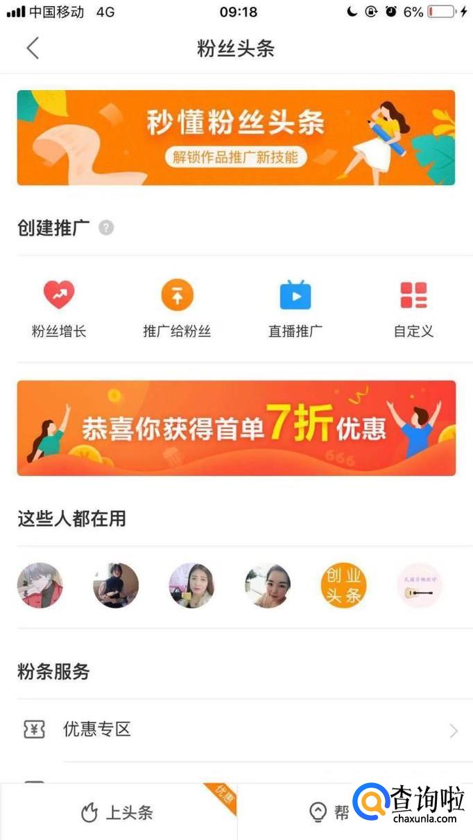 然后点击粉丝头条,如下图所示。